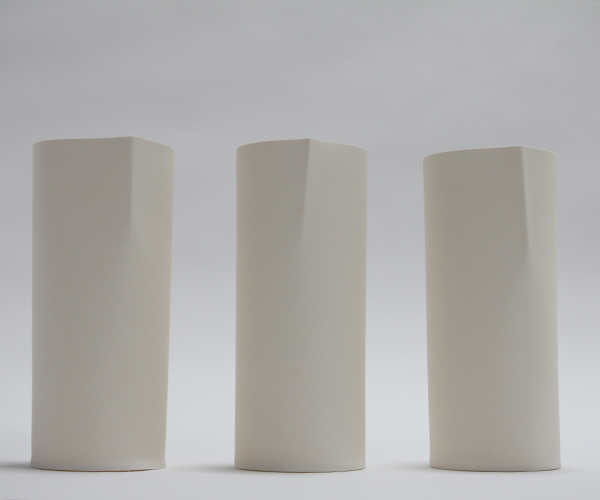Mais comment accompagner ces qualités et les transcender en résistance et dureté tout en maintenant légèreté et pureté ? C’est le rôle composite du « papier porcelaine » qui allie souplesse et technicité. Papier modelé, la cuisson en modifie l’essence. La structure apparaît à 1280°c. La feuille cristallisée, l’objet s’est stabilisé. Pas de contraintes à la cuisson, pas de rythmes imposés. Les formes proposées se réalisent, se contracte ou se déplient. La souplesse du façonnage créer la légèreté de l’objet ! Le corps est révélé, l’objet accompli.