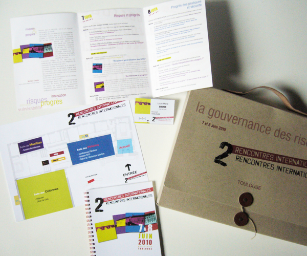 Déclinaison de quatre couleurs et jeu de plan pour le quadriptyque graphique. Lechoix des couleurs accompagne le déroulement des rencontres. Les différents groupes ainsi que les lieux de conférence.