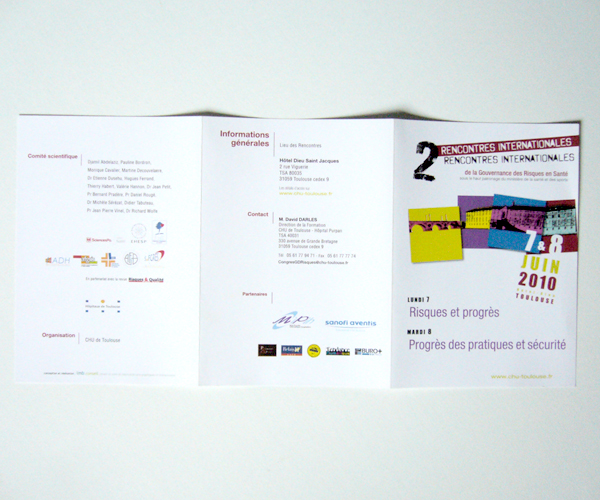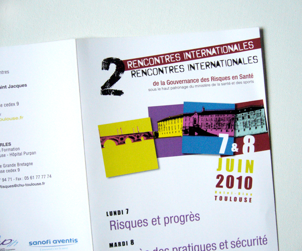 Création et réalisation identité visuelle, charte graphique, et déclinaison produits de communication pour le CHU de Toulouse.